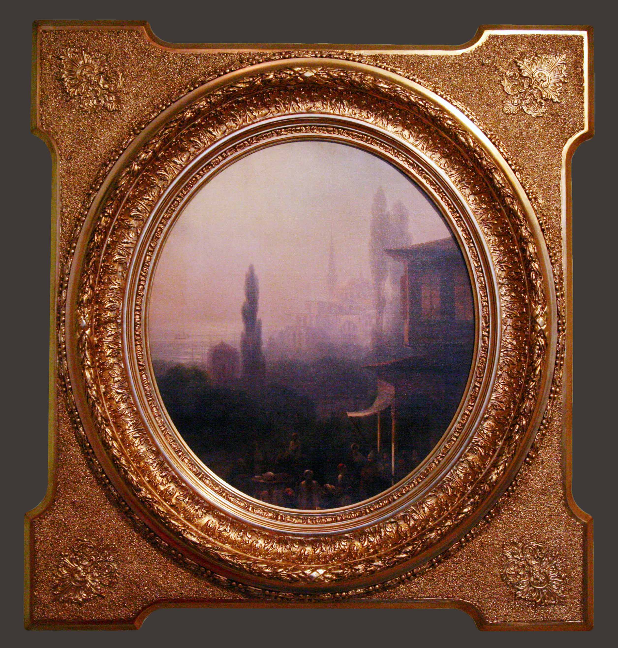 Тип рамы Эксклюзивная. Овал с внешним паспартуШирина рамы 15Размеры картины 65*57Стоимость рамы 120000 ₽